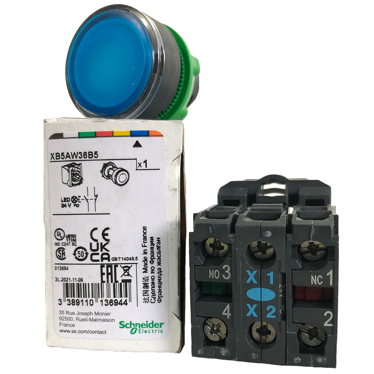BOTÃO 22MM PLÁSTICO LUMINOSO LED 24VCA CC 1NA AZUL SCHNEIDER ELECTRIC – XB5AW36B5