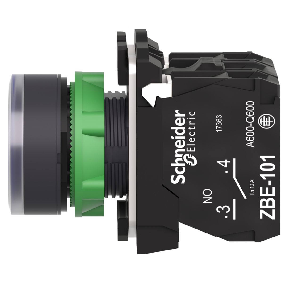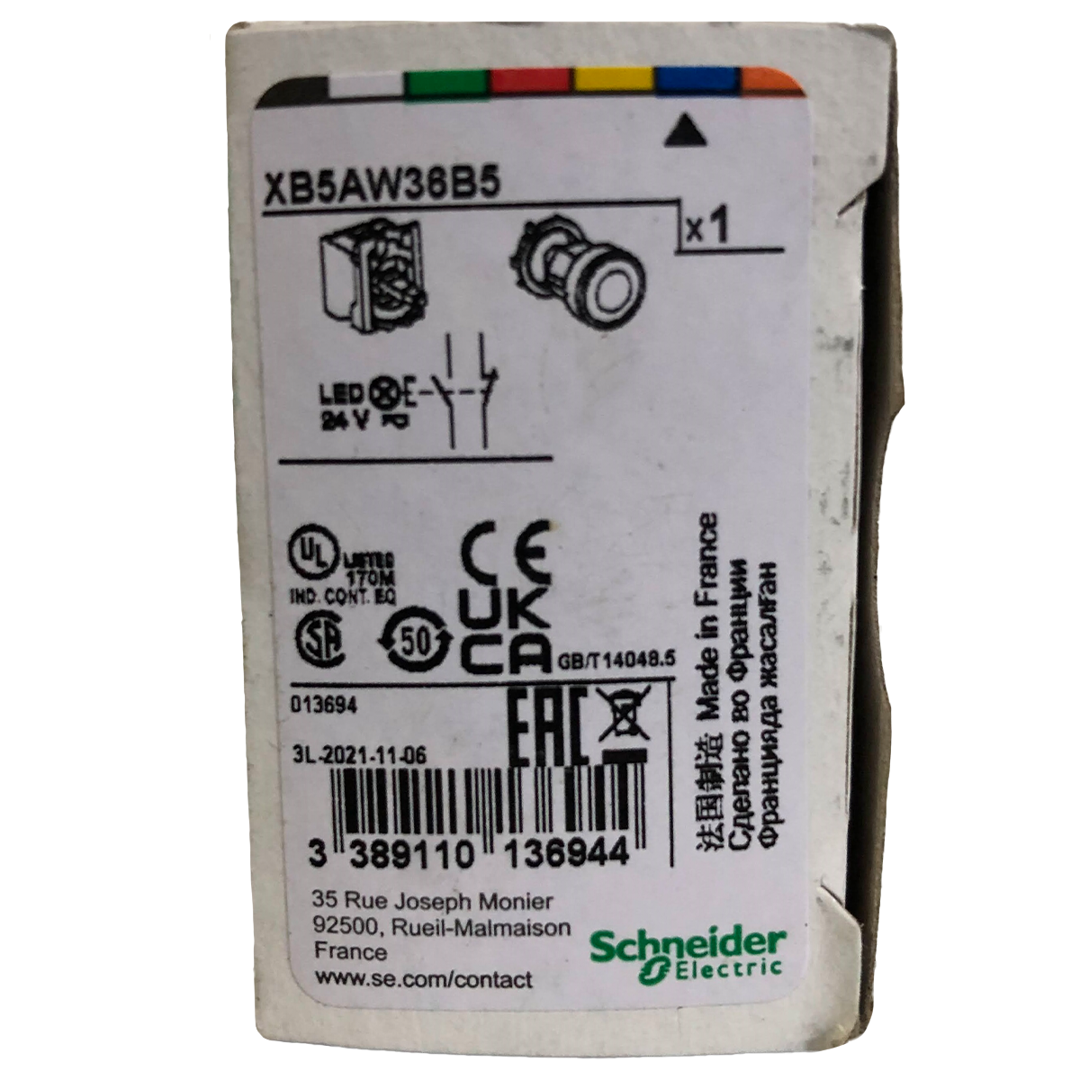 O XB5AW36B5 é um botão plástico luminoso da linha Harmony XB5, com LED 24VCA/CC, que opera com mecanismo de retorno por mola e possui um contato Normalmente Aberto e um Normalmente Fechado. Ele oferece uma interface ergonômica para controlar suas máquinas e pode ser facilmente instalado em painéis com furação padrão de 22mm de diâmetro. É resistente a impactos, poeira, água e vibração graças ao seu IP66 / IP67 / IP69 / IP69K, tornando-o ideal para todas as aplicações, em especial as que exigem resistência a agentes químicos e isolamento elétrico duplo. Graças à sua simplicidade de instalação, flexibilidade e robustez, atende aos requisitos da maioria das aplicações industriais, dentre elas podemos citar: Indústria de alimentos e bebidas, Indústrias químicas, Painéis de distribuição de energia.