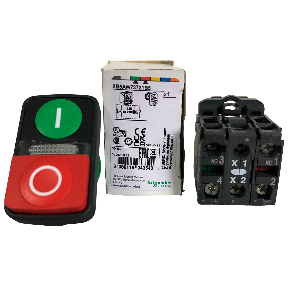 BOTÃO SCHNEIDER DUPLO LUMINOSO 22mm PLÁSTICO – XB5AW73731B5