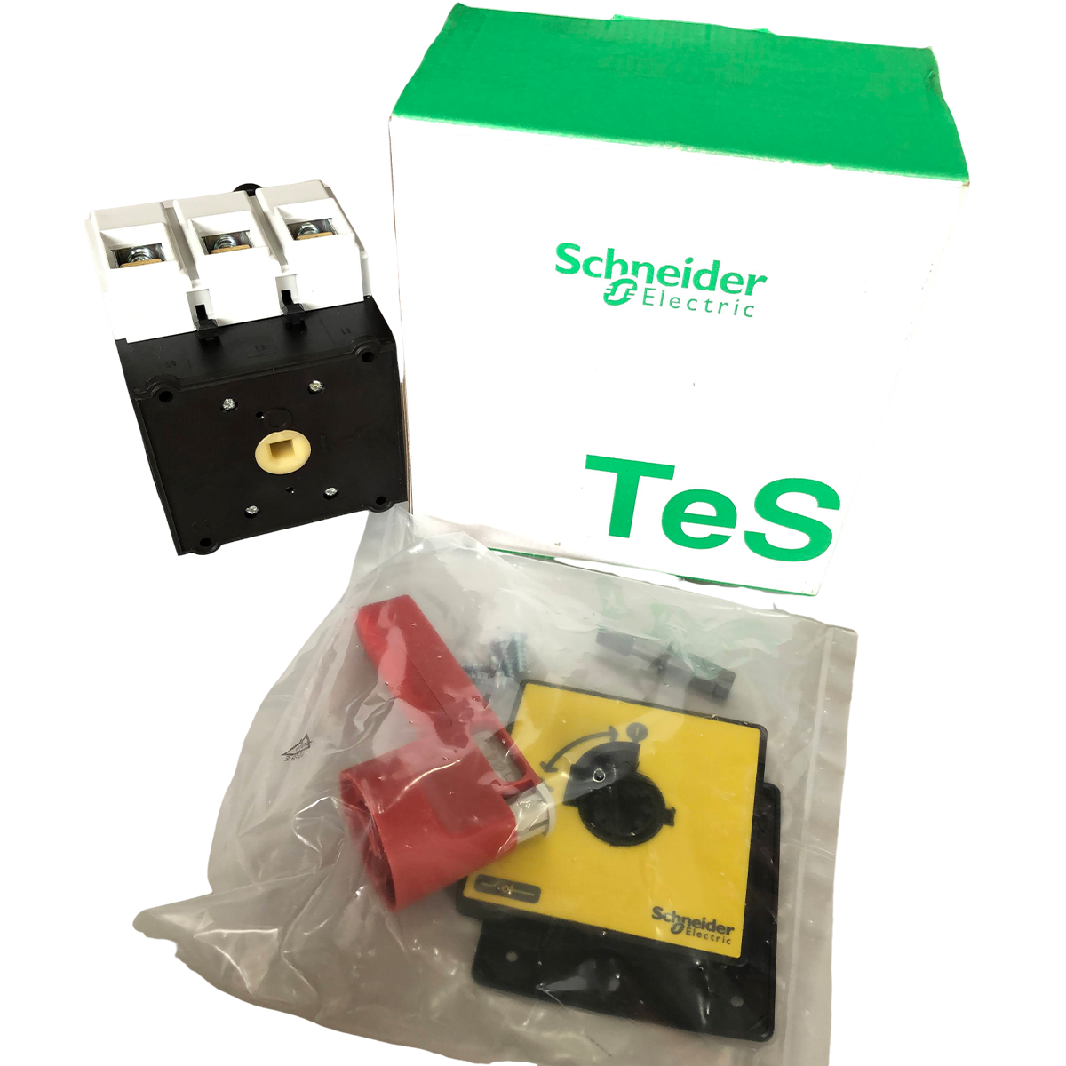 Chave seccionadora TeSys Vario para montagem em porta, 3 polos, 125A/690V, para aplicações de comutação de motores até 37kW@400V AC-23. Unidade completa composta por um corpo de interruptor V5, uma manopla vermelha com placa frontal amarela 90x90mm KCF3PZ. Destinado ao uso de desconexão do interruptor de parada principal e de emergência. alça bloqueável, para 3 cadeados (a encomendar em separado). maçaneta com 4 parafusos de fixação na porta, garantindo IP65 à fixação. Certificação multipadrões (IEC, UL, CSA, CCC, EAC, Marine), compatível com Green Premium (RoHS/REACh).