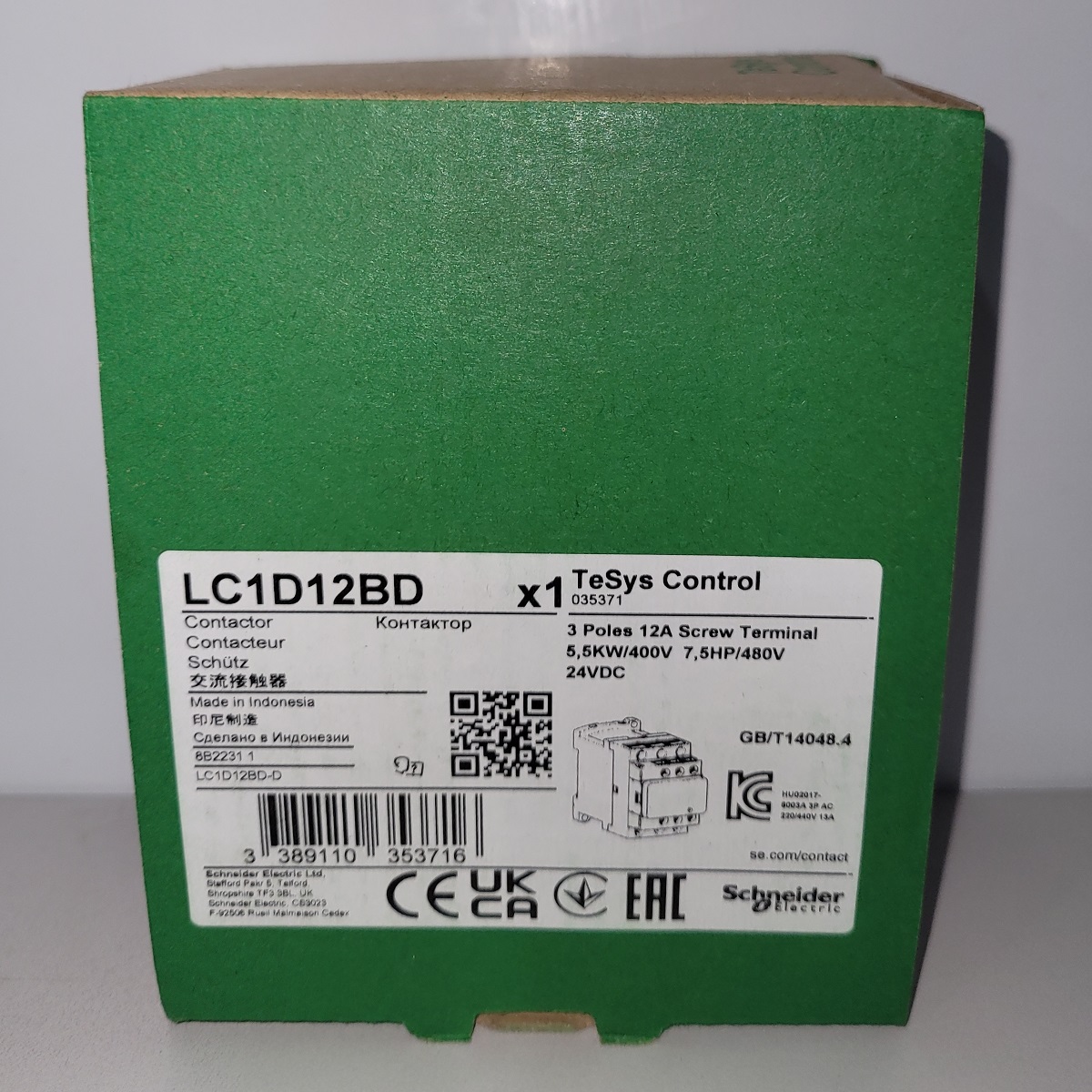 Contator TeSys Deca, 3 polos (3NA), para aplicações de controle de motores até 12A/690V AC-3/3e (5,5kW@400V). Fornece uma bobina de 24 Vcc com módulo supressor de transientes, contatos auxiliares embutidos 1NA+1NF (certificado espelho NF), conexão por terminais de grampo de parafuso. Para taxas de operação de até 3600 ciclos/hora e ambientes de até 60°C, adquire alta confiabilidade e durabilidade. Compacto (largura de 45 mm), montagem em trilho DIN ou fixação por parafuso. Certificação multipadrões (IEC, UL, CSA, CCC, EAC, Marine), compatível com Green Premium (RoHS/REACh).