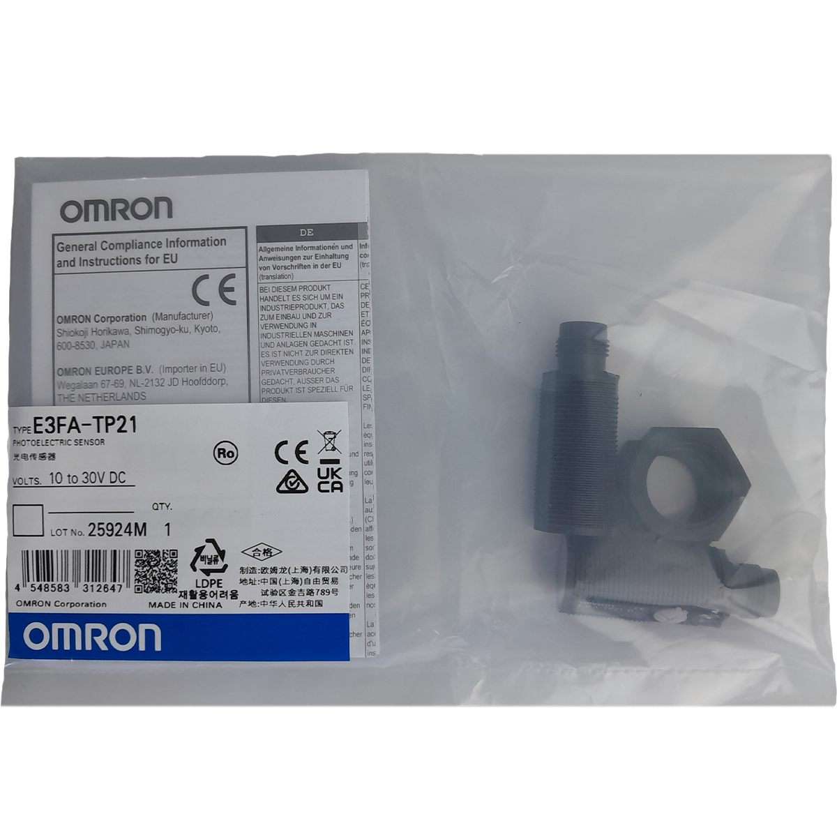 E3FA-TP21 – SENSOR FOTOELETRICO TUBULAR M18 PLASTICO BARREIRA ALCANCE DE 20M AJUSTAVEL PNP LIGHT-ON/DARK-ON OMRON