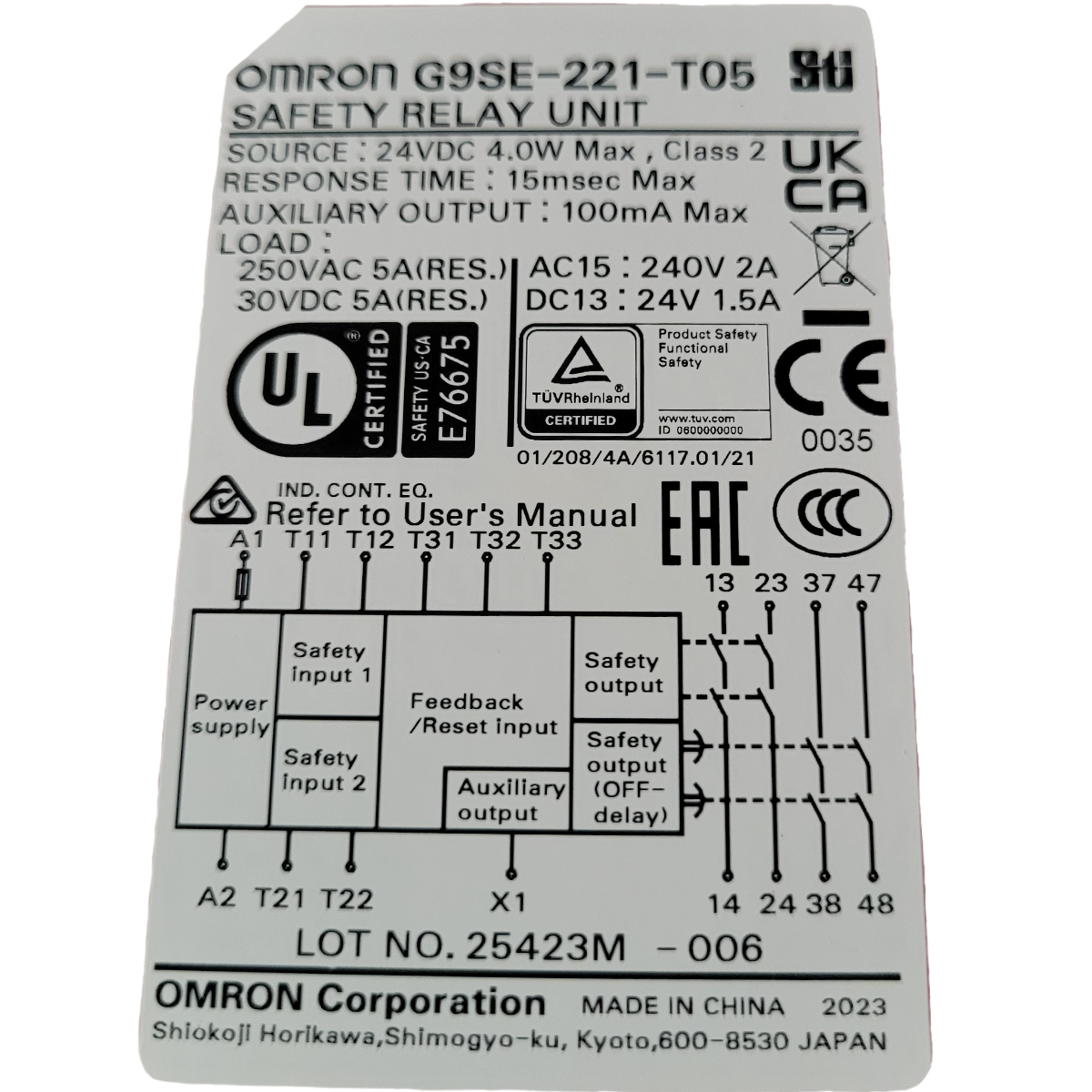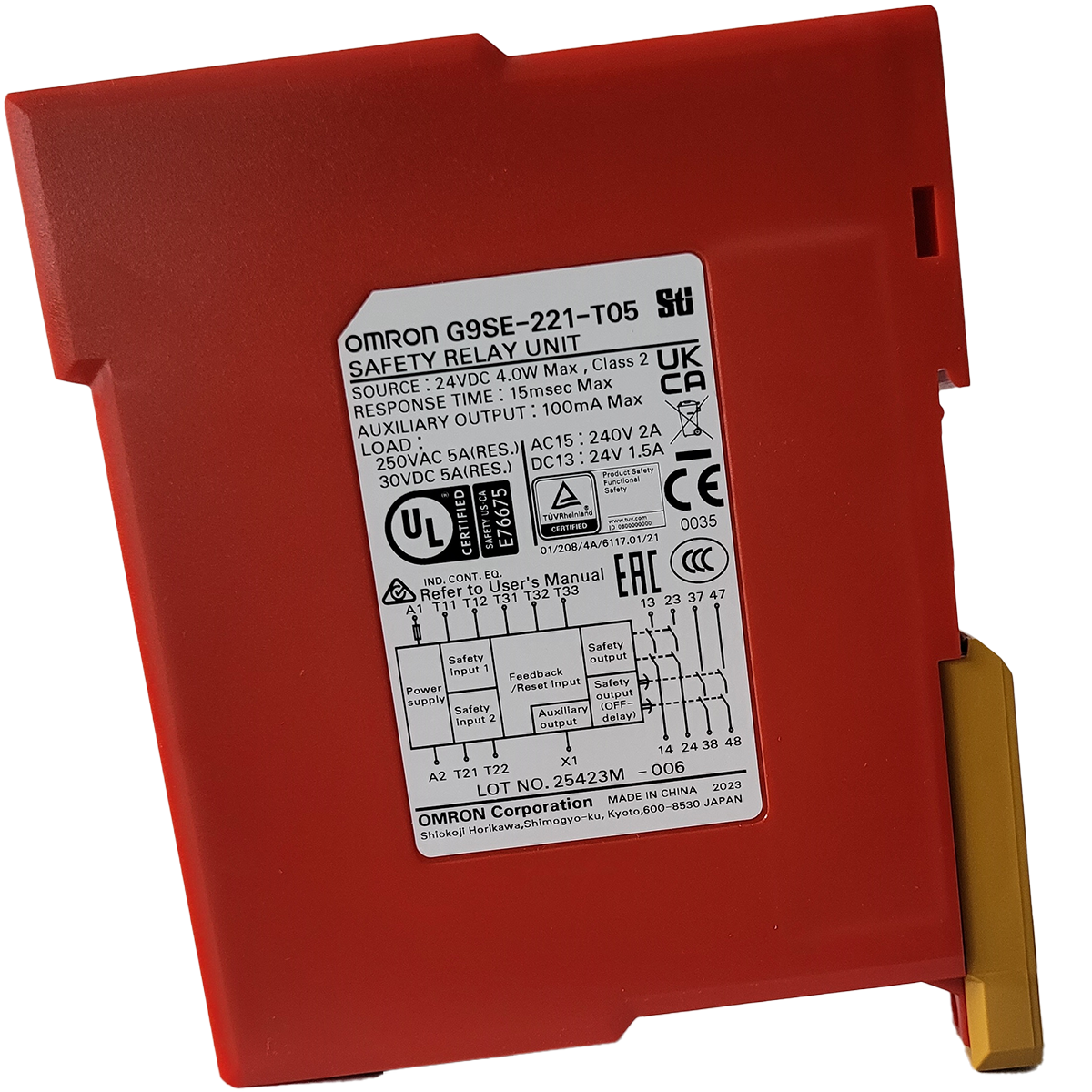 Um relé de segurança compacto para aplicações de segurança simples, como monitoramento de botões de emergência e sensores de portas.